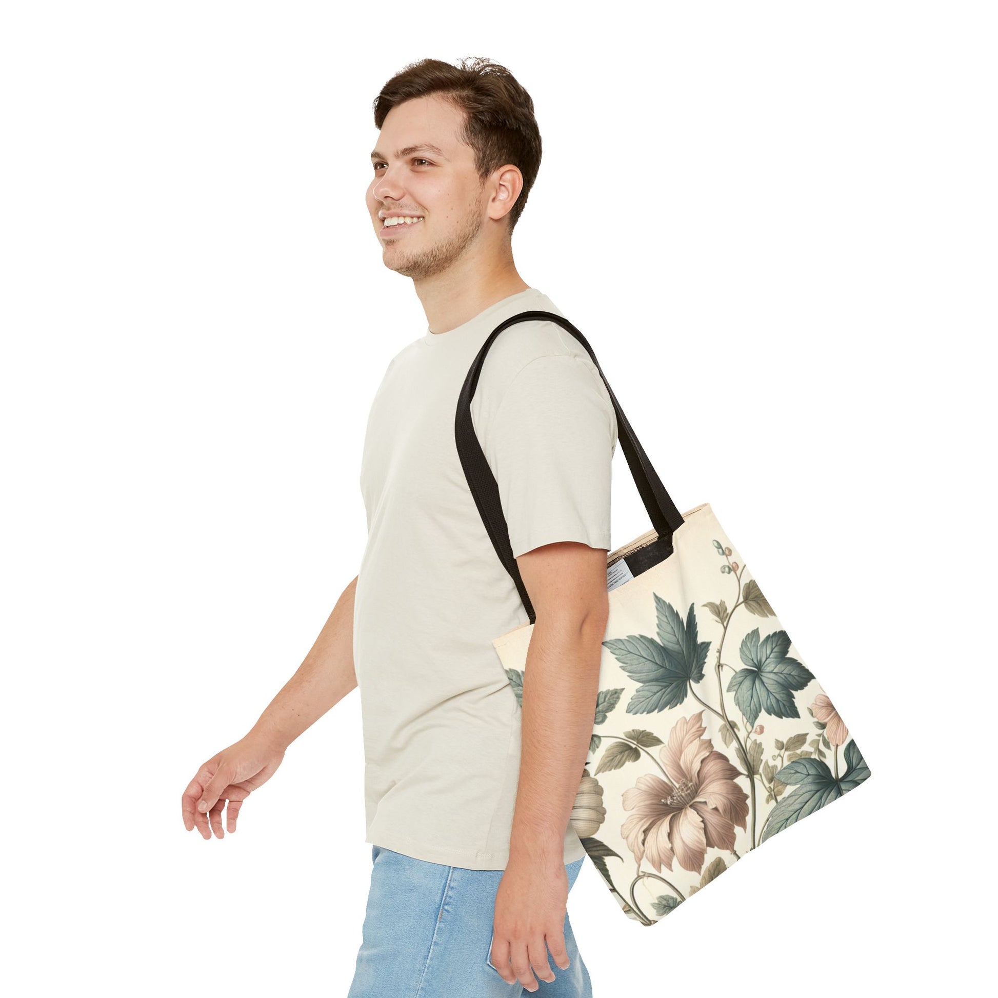Leaf & Loom Victorian Ivy Tote Bag is a stylish and practical accessory that exudes a vintage vibe. Made with durable polyester fabric, reinforced stitching, and boxed corners, this tote bag is perfect for everyday use. With 5 handle color options and 3 size choices, it can cater to all your customers' needs. Ideal for those who appreciate unique and elegant designs, this tote bag is perfect for shopping, work, or travel. It makes a great gift for holidays, birthdays, or special occasions.